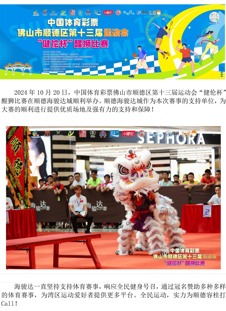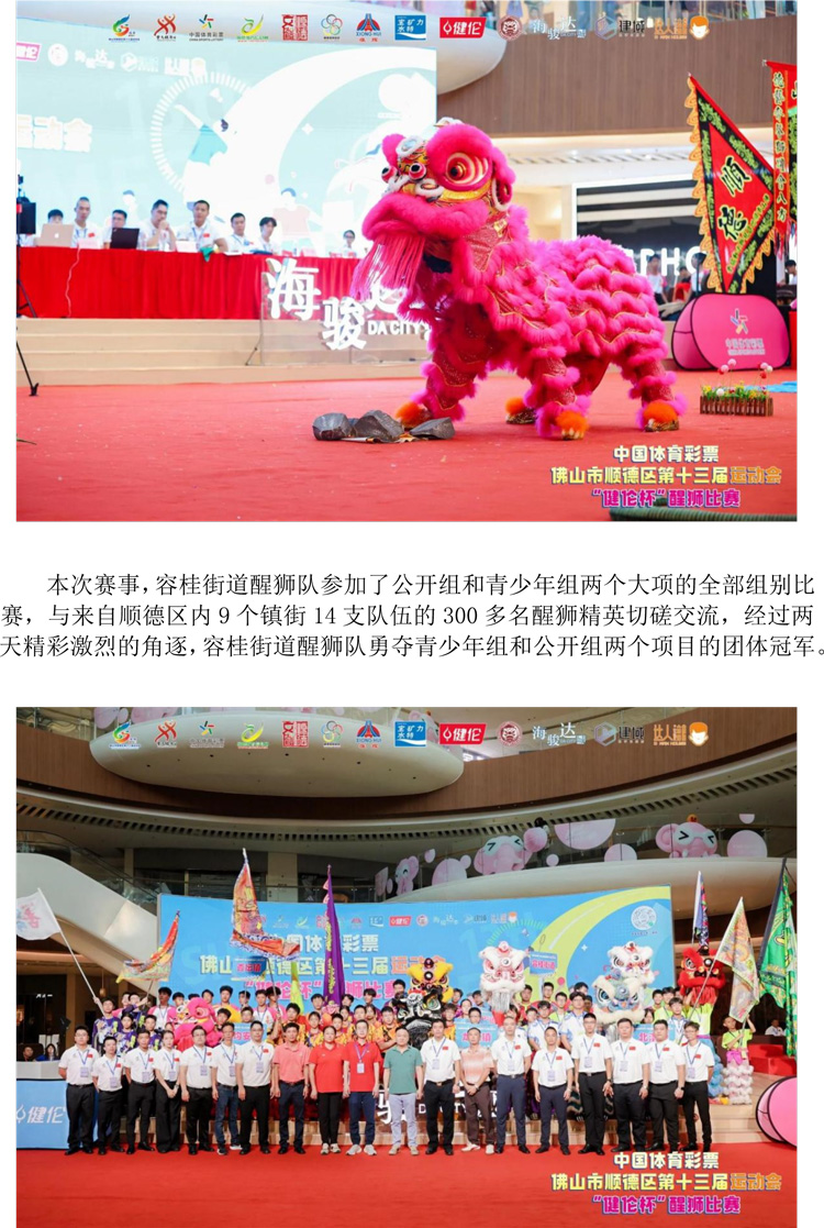 順德海駿達城大力支持區(qū)運會醒獅賽